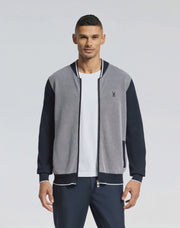 Front contrast panel in 2 colour birdseye stitch